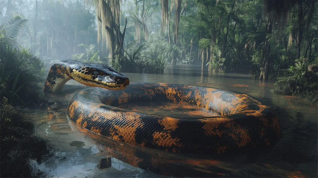 Titanoboa cerrejonensis is the largest snake known to have ever existed, reaching lengths of around 42 feet (13 meters) and weighing over 2,500 pounds (1,135 kilograms). This size makes it not only the largest snake ever recorded but also one of the largest terrestrial predators of its time. Discovered in Colombia’s Cerrejón coal mines, this massive constrictor lived approximately 60 million years ago in a warm, humid tropical environment similar to today’s Amazon Basin.