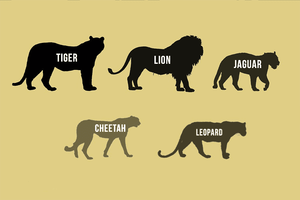 Leopards are the smallest of the large cats, which includes lions, tigers and jaguars. Female leopards weigh 46 to 132 pounds and males can be up to 50% bigger, weighing 80 to 165 pounds. The average length of a leopard is between three and six feet.