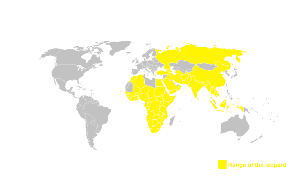 Leopards are found in sub-Saharan Africa, northeast Africa, Central Asia, India and China. They can live in a varied habitat, from rainforests to deserts, woodlands and forests.