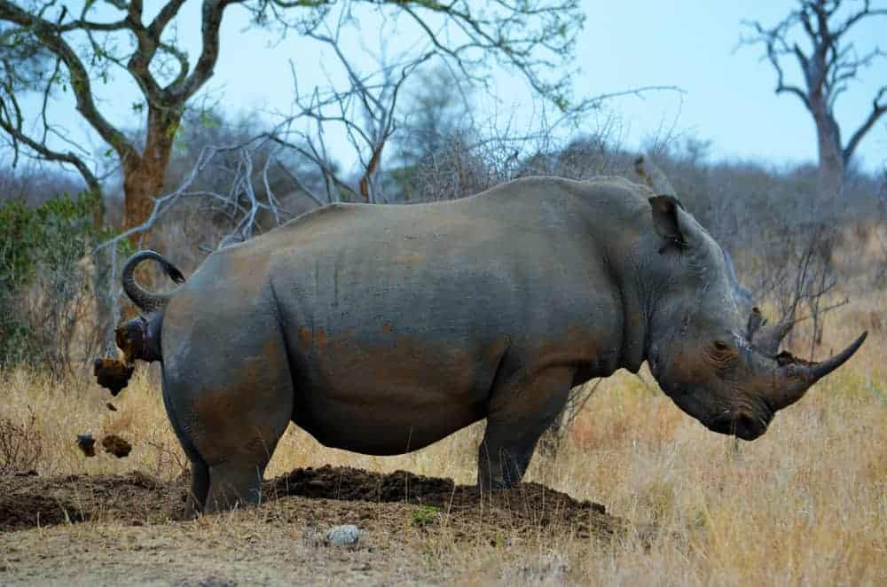 Rhinoceroses use their dung (poop) as a way to communicate with other rhinos. They leave dung piles in specific locations to mark their territory and let other rhinos know that they’ve been there. This “scat signaling” is an important part of their social interactions and can help avoid confrontations.