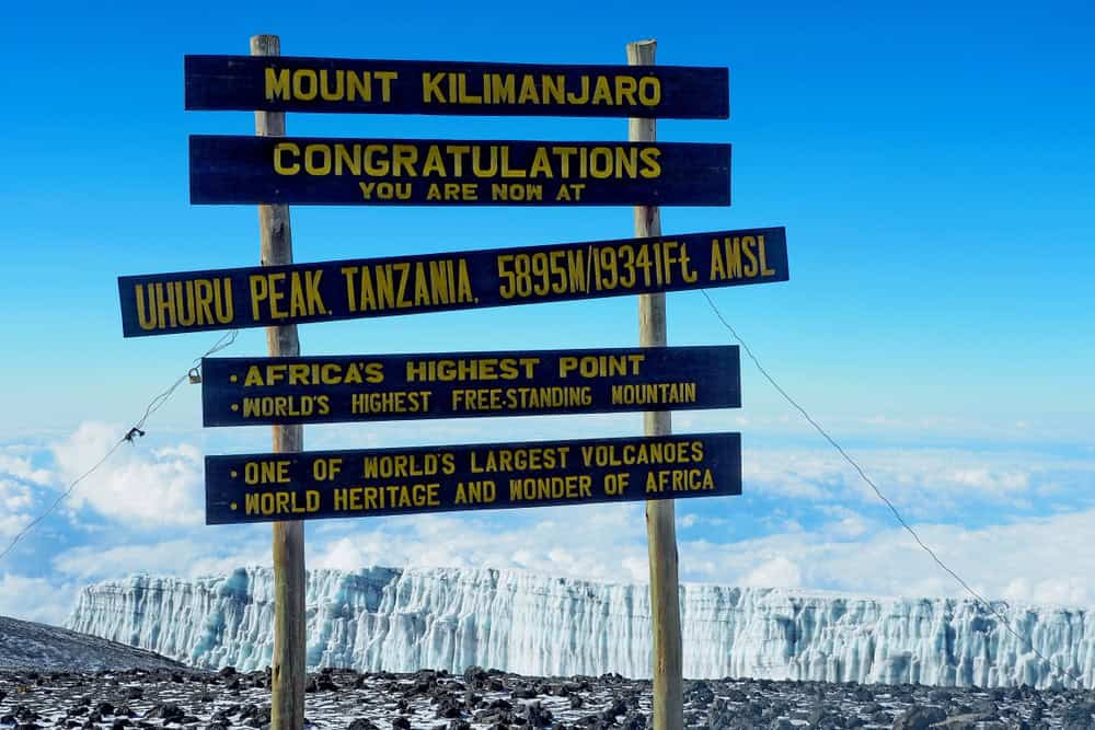 Kilimanjaro is not only Africa’s tallest peak, but also the world’s tallest free standing mountain. The summit, named Uhuru Point, is 5,895 meters (19,341 feet) above sea level.