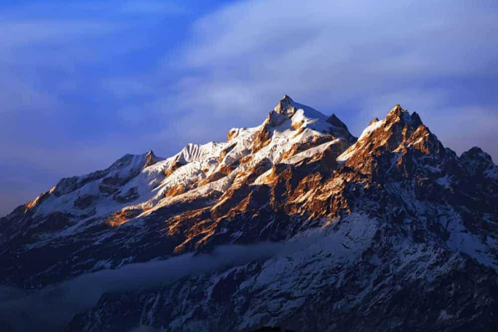 Kangchenjunga is the highest peak in India and until 1852, was thought to be the highest mountain in the world. The mountain straddles Nepal and India and is considered to be sacred. It was first climbed in 1955 by Joe Brown and George Band, who were part of a 1955 British expedition. As promised, they stopped just short of the summit to keep it untouched.