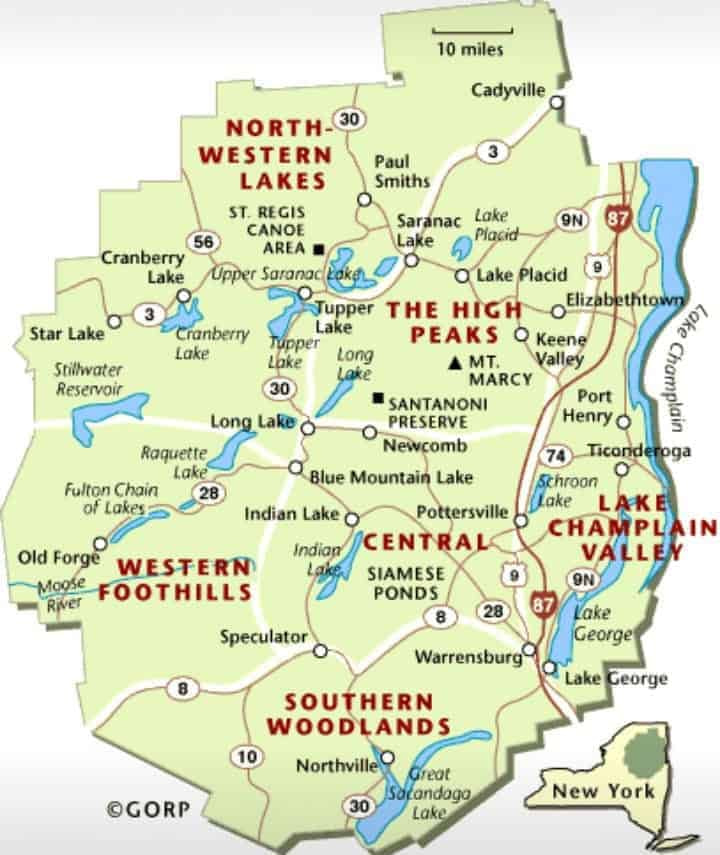 What are the Regions of the Adirondacks?
