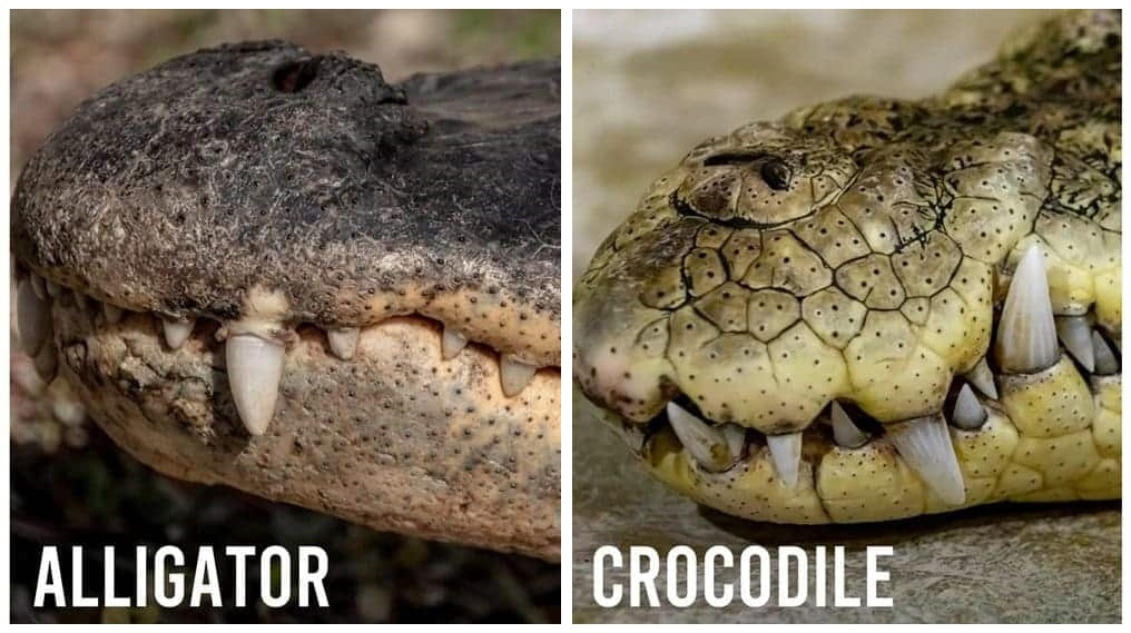 - When their mouths are closed, alligators do not show their lower teeth. Crocodiles do show some lower teeth.