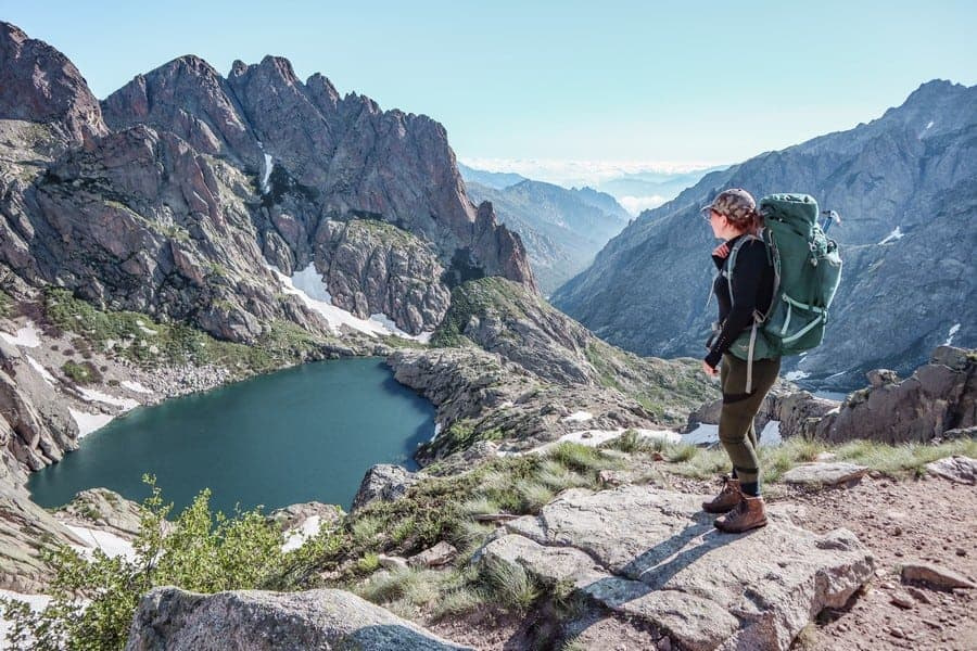 The GR20 is reputed as one of the toughest long-distance trails in Europe. Corsica is an island in the Mediterranean Sea, just southeast of mainland France. The trail from north to south covers around 112 miles (180 kilometers) and typically takes 15 days to complete. The route traverses a landscape of peaks and forests, with significant changes in elevation. The GR20 is divided into two sections: the northern part, which is more mountainous and challenging, and the slightly easier southern part. Despite its difficulty, the trail is well-marked and has a range of accommodation options from simple refuges to tents.