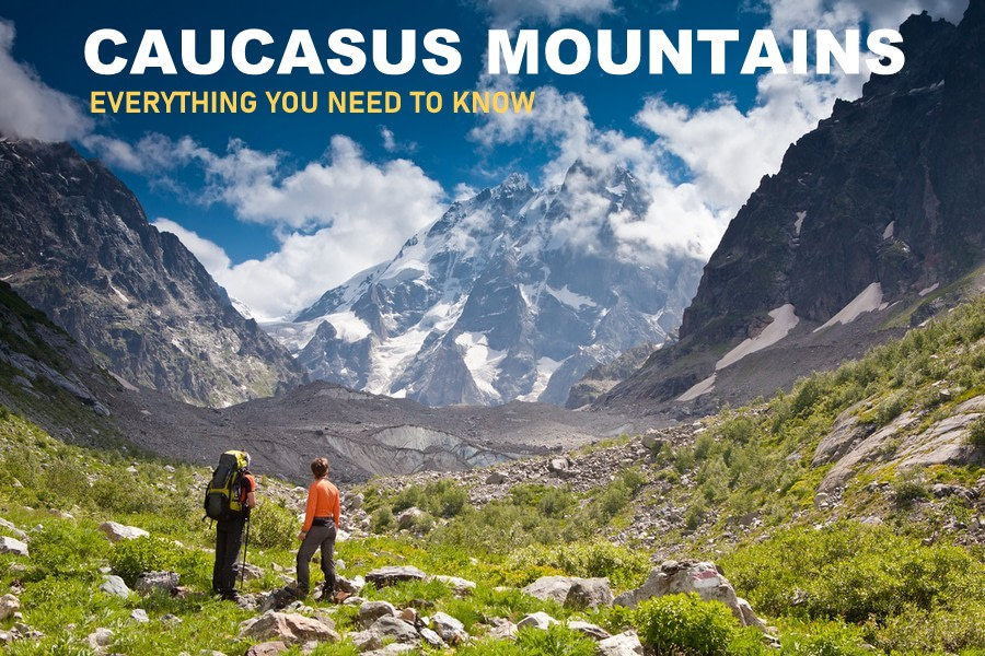 The Caucasus Mountains run about 750 miles (1,200 kilometers) from west to east. Their width averages 60 to 100 miles (100 to 160 kilometers).