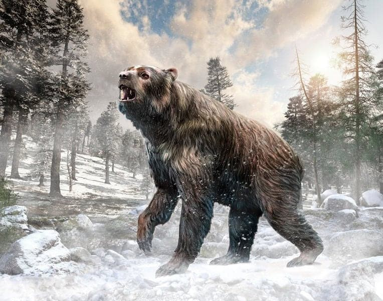 Arctodus simus stood about 6 feet (1.8 meters) tall at the shoulder when on all fours, but it could reach heights of over 12 feet (3.7 meters) when standing upright. The bear’s estimated weight ranged from 900 to 2,500 pounds (408 to 1,134 kilograms), making it significantly larger than any living bear species today.