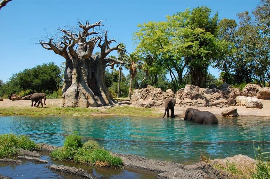 Kilimanjaro Safari features a variety of animals commonly found in Africa, such as lions, elephants, and giraffes. These animals are well cared for in a controlled environment that ensures regular sightings for visitors. As expected, there are barriers between animals so there is no predation that occurs at the park. However, these barriers are designed to blend in well with the habitat so the separation is not so obvious.