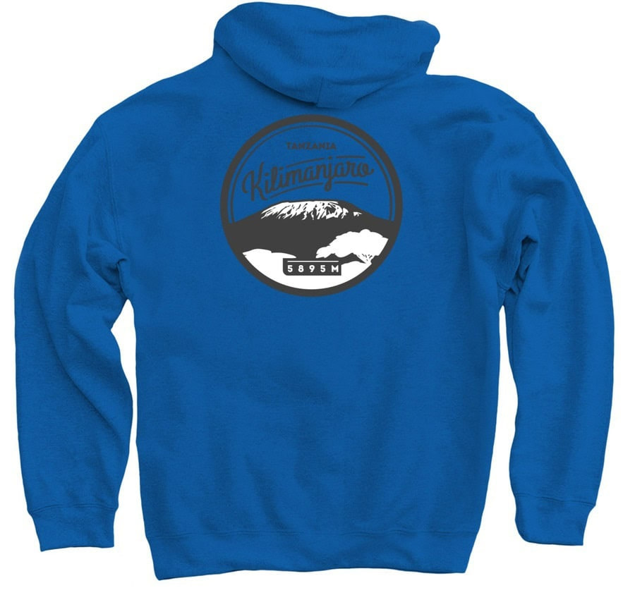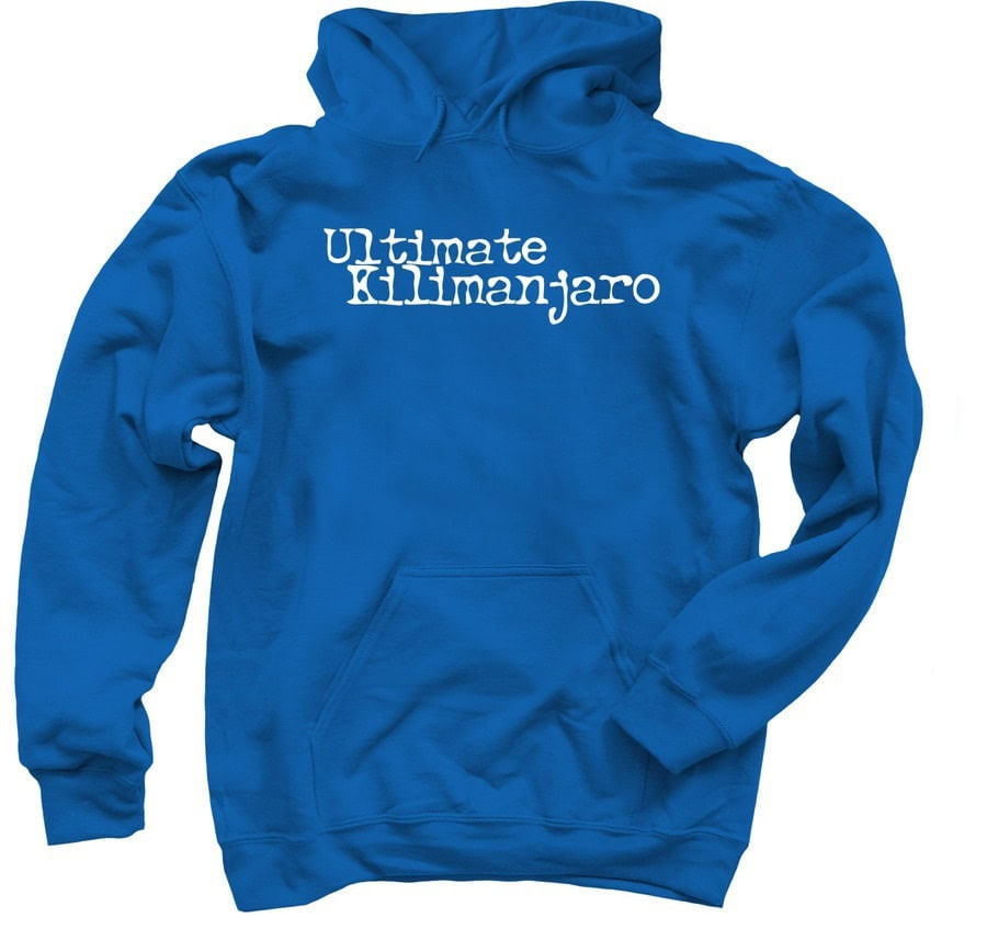 The Ultimate Kilimanjaro® Unisex Camp Hoodie is a pullover hooded sweatshirt with the company logo on front and Mount Kilimanjaro/5895M illustration on back. Cotton/poly blend.