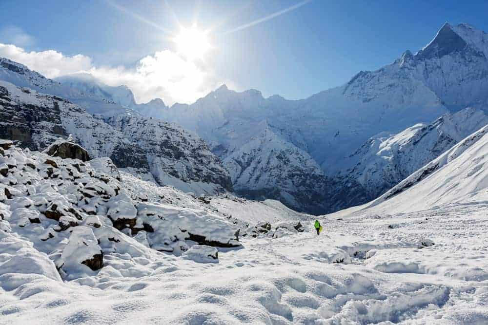 As one ascends to middle elevations, between 3,500 and 5,500 meters (11,500 to 18,000 feet), the climate becomes temperate. Summers here are milder, and winters can be harsh with heavy snowfall, especially above 4,000 meters (13,000 feet). The spring (March to May) and autumn (September to November) months offer more stable weather conditions, making these seasons ideal for trekking and mountaineering.