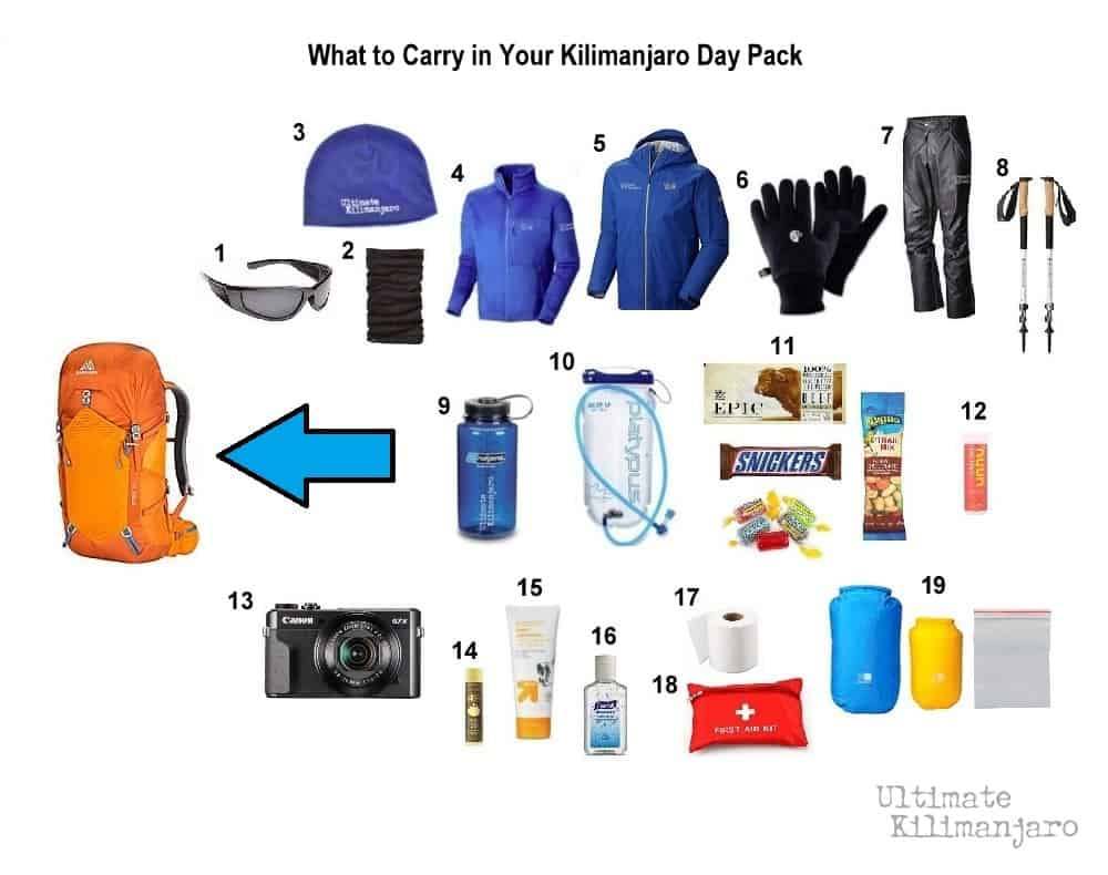 Climbers are expected to prepare their own daypacks (or backpacks) and to place all other items into a duffel bag for the porters. As far as what goes into the daypack, it depends on what you may need during the day.