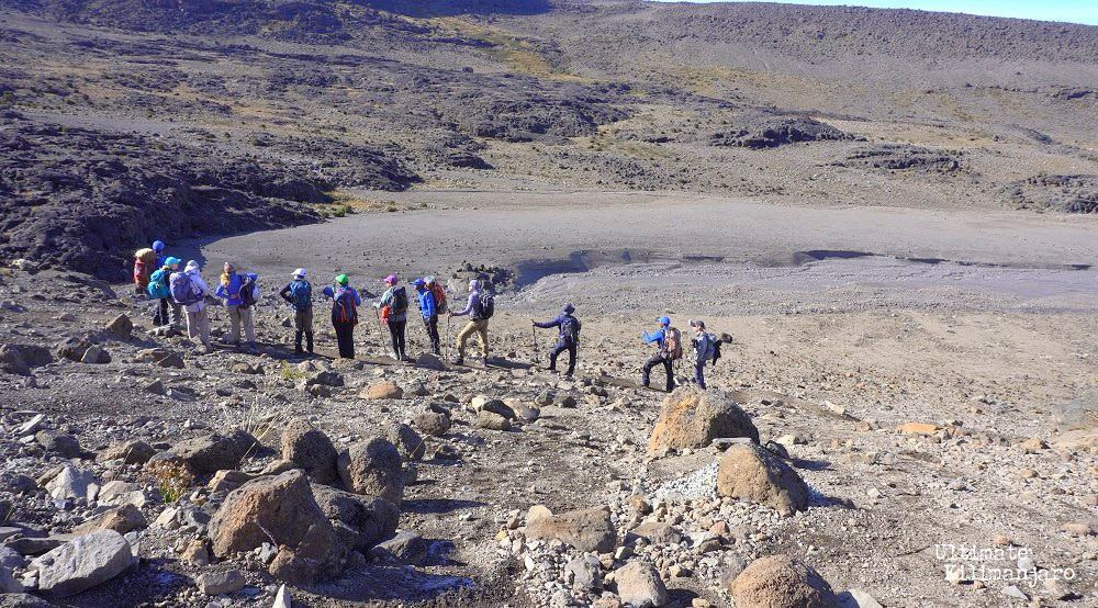 Farther up, in the moorland and alpine desert regions, the trail turns into dirt and rock. Usually, it’s very dry and dusty. However, this makes the path fairly easy to walk on as the ground is firm and stable. Most of the time you will spend on Kilimanjaro will be in these two zones, which is an advantage considering this substrate requires the least amount of effort to get around.