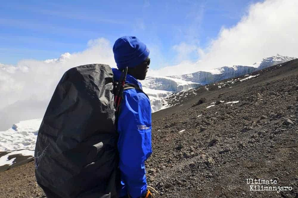 The path to and from Uhuru Point requires a steep ascent and descent on loose gravel called scree. Trekking on this terrain can be especially tiring. Your feet sink into the ground and the rock shifts under your bodyweight. Gaiters help keep the rocks from getting into your shoes and trekking poles will help you balance.
