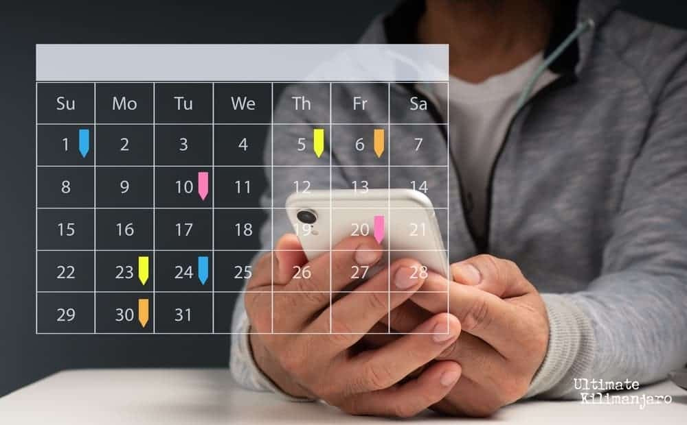 For everyone, the longest/hardest workouts should be performed two to four weeks before departure. During the last two weeks, you should taper off your training and in the final days, rest so that your body has time to recover before your actual climb. At this point, it’s more important to stay healthy and injury free, than to get a few more sessions in.
