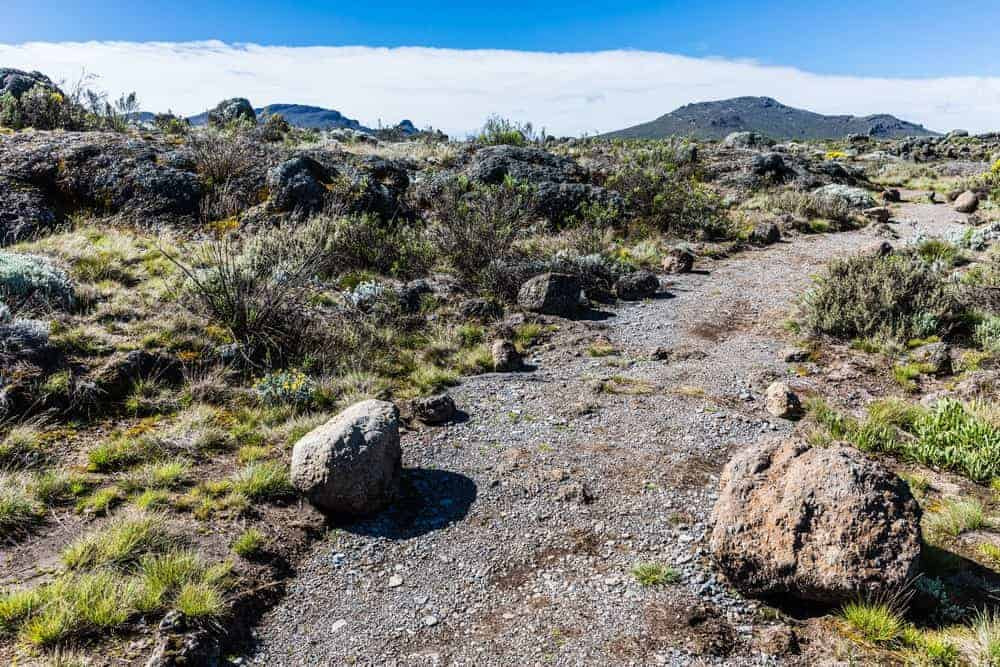 As climbers ascend from the lower rainforest zone, they enter into the heath and moorland zone of Shira Plateau. The terrain is quite easy to tackle, given its flat, compacted surface and minimal elevation gain. When the weather is clear, trekkers will enjoy early, unobstructed views of Kilimanjaro’s summit from the trail.