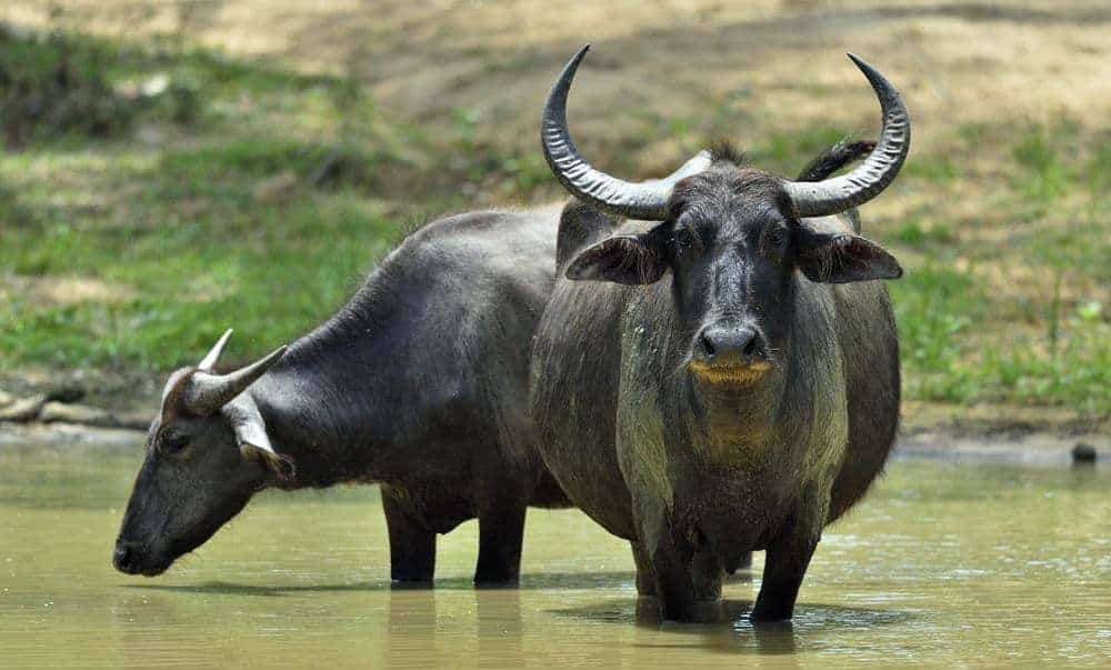 Weighing in at up to 2,650 pounds (about 1,200 kilograms), the Water Buffalo is the second strongest animal. It has a massive build and the ability to adapt and thrive in varied aquatic and land habitats. They are particularly adept at plowing through wetlands and muddy terrains. Water Buffalo have a gentle nature, often seen in their interactions with humans, belying the immense strength and resilience they possess.