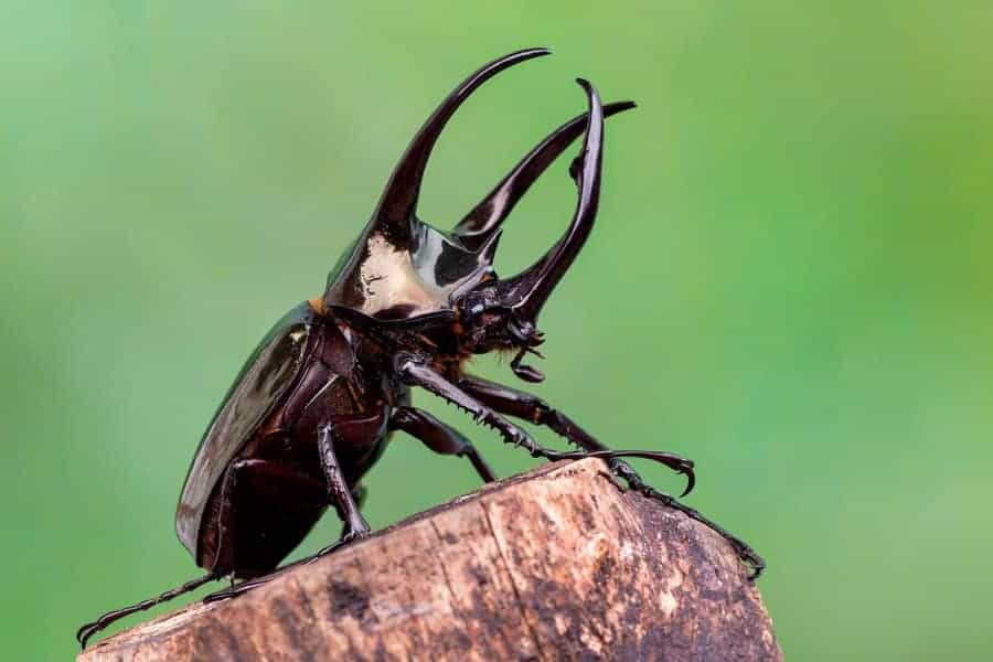 Rhinoceros Beetles also have an impressive strength-to-size ratio. They can reach up to 7 inches (173 mm) in length, making them the longest species of beetle in the world. Rhinoceros beetles can carry objects up to 850 times their own body weight. This incredible strength, akin to a human lifting nine adult elephants, is used in battles over mates and territory. They have a robust exoskeleton and strong, muscular structure, especially in its thorax and front legs.