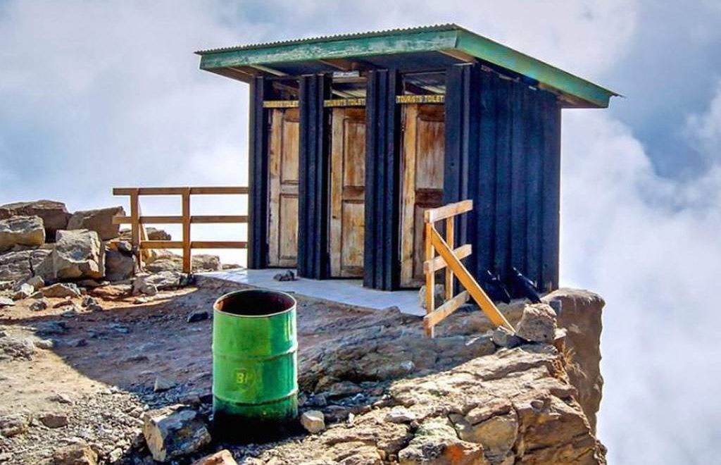 There are public toilets at each campsite, but they are filthy. We bring a private, portable toilet on every climb for our clients. The commode itself is plastic. A tent, which is shaped and sized like a phone booth, covers it for privacy. This is set up at every campsite. If you have to urinate or defecate while hiking, go behind a bush or rock.