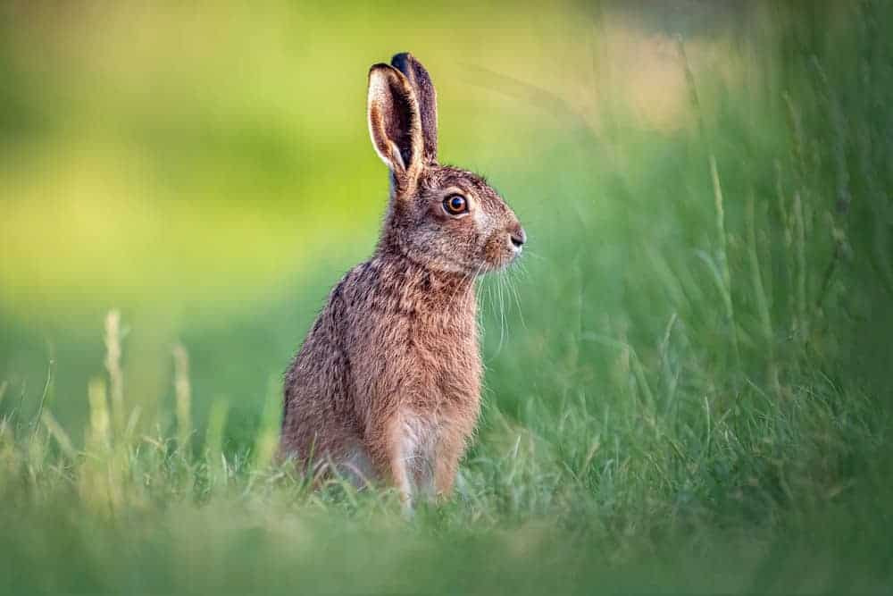 The brown hare has great speed and agility for evading predators in open fields. Its powerful hind legs enable high-speed running and significant leaping ability. Brown hares are mostly nocturnal, using their speed to forage for food and escape nocturnal predators. They spend the daytime in shallow depressions called ‘forms’, relying on their camouflage to stay hidden. Their ability to swim adds to their repertoire of skills for escaping threats. Brown hares are solitary creatures.