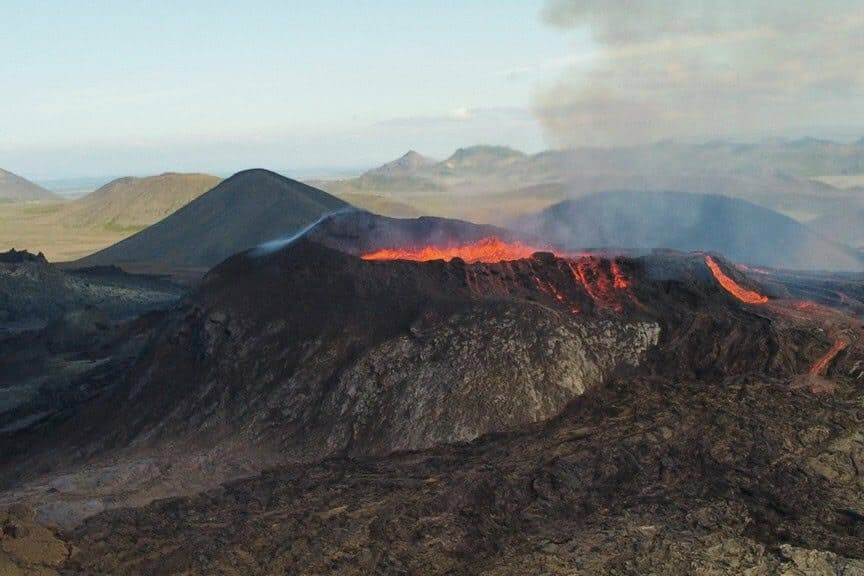 Fissure volcanoes are characterized by long, linear cracks or fissures in the earth’s surface from which lava erupts. These eruptions usually do not involve explosive activity but involve the effusion of large quantities of lava that flows over the surface.