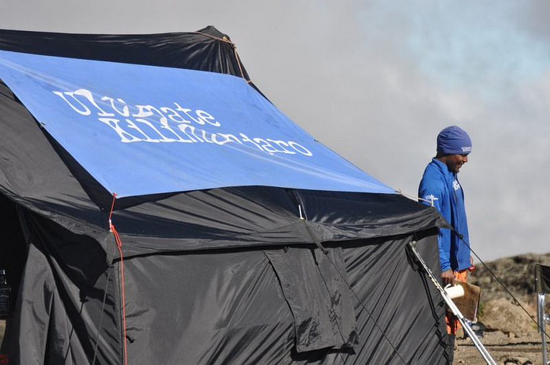 Usually, climbers stroll into the campsites in the early afternoon to mid afternoon (between 2:00 PM to 4:00 PM) depending on the day. The porters have already been here for hours, busy preparing for your warm welcome.