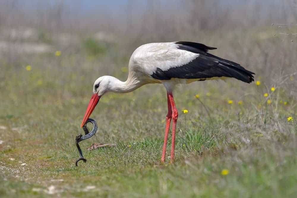 • Cranes: Similar to herons, cranes can occasionally eat snakes using their long legs and beaks.