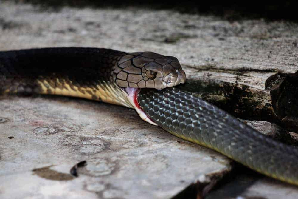 • King Cobras: The diet of these snakes primarily consists of other snakes. They are immune to certain snake venoms.