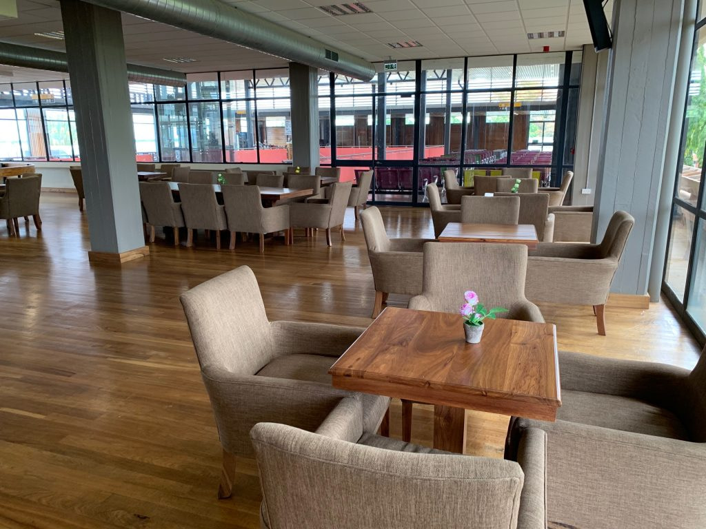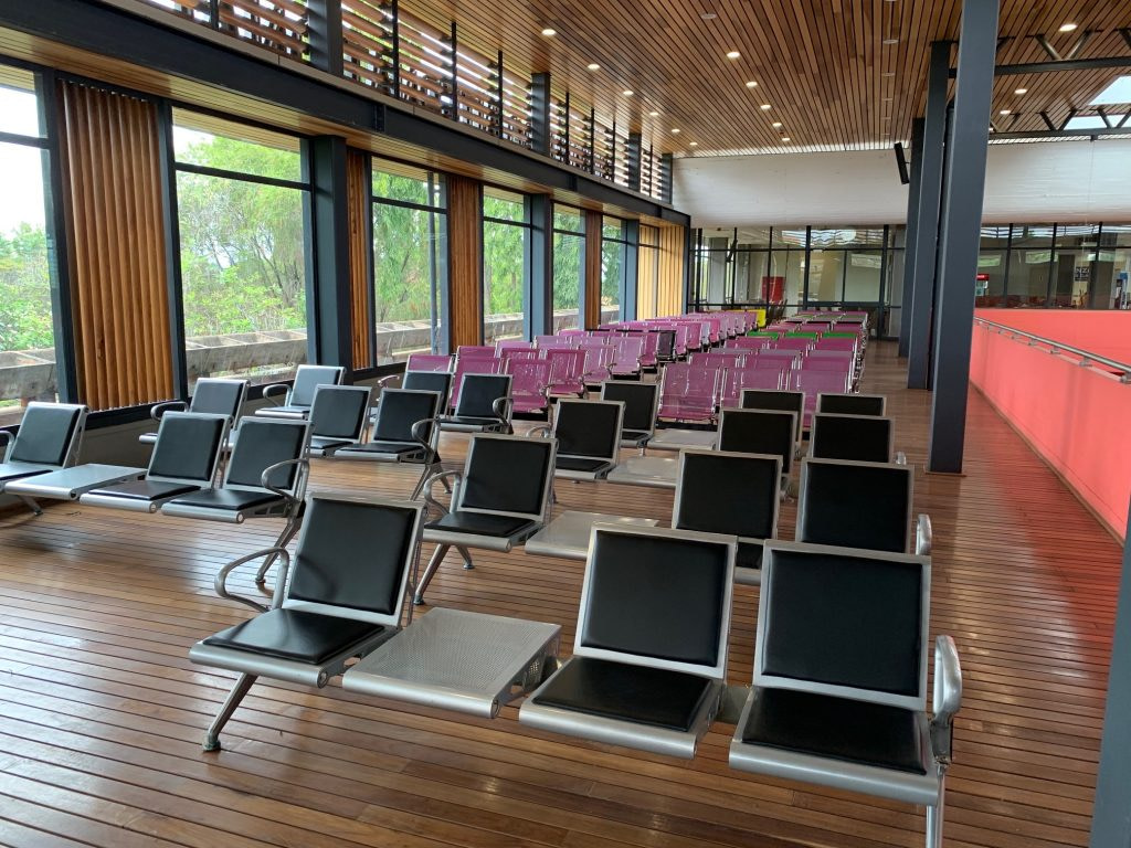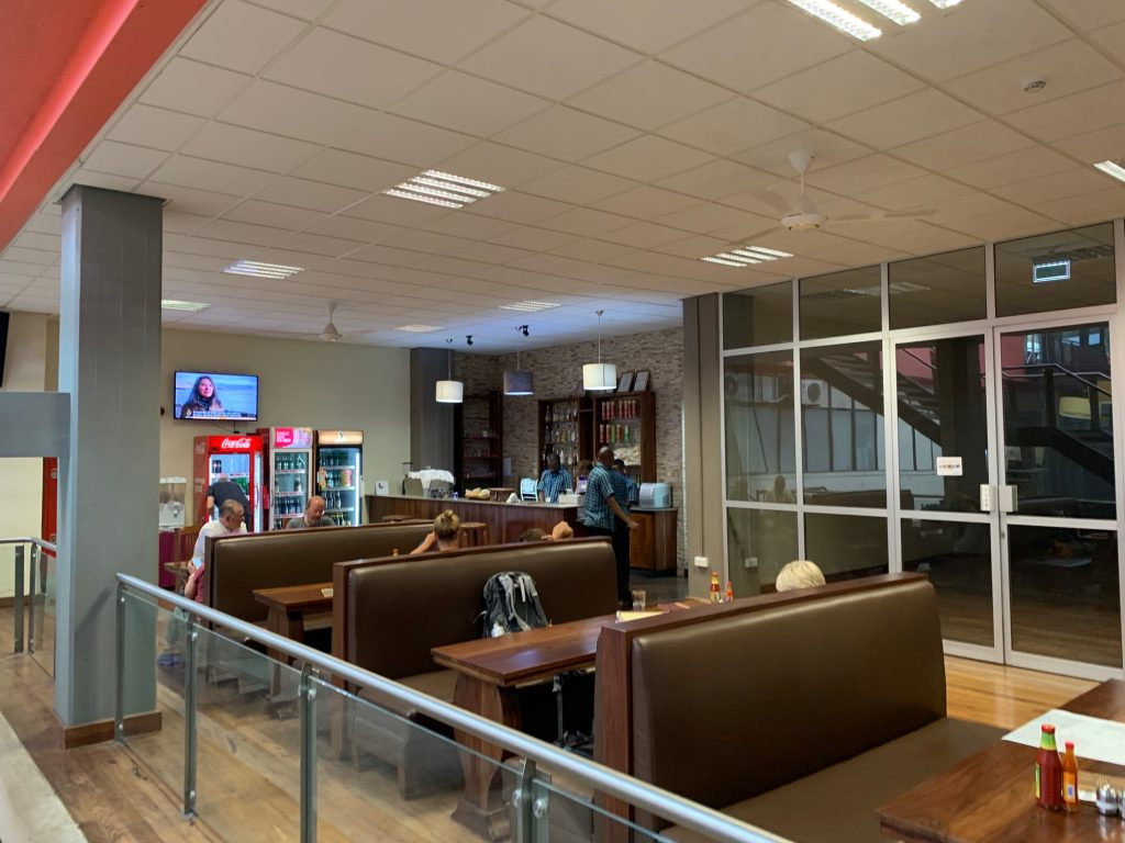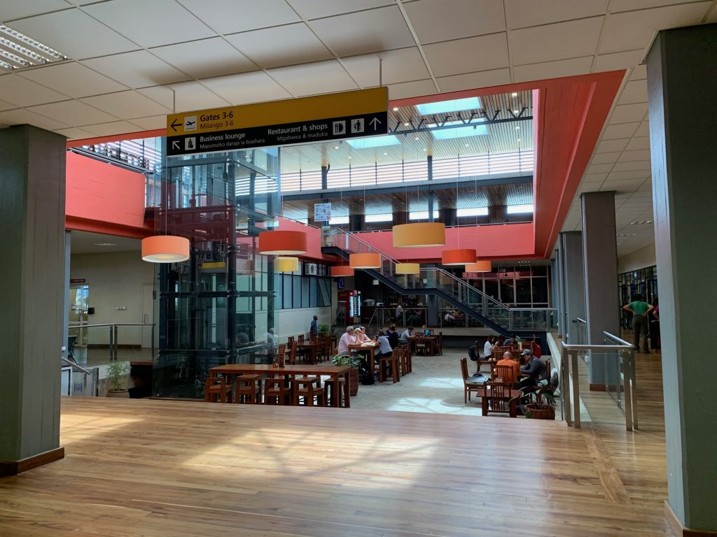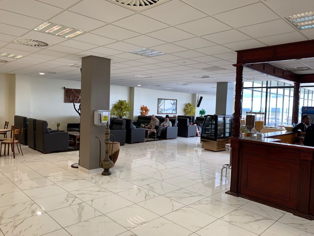 With your boarding pass and passport, you clear security and enter the common waiting area. There are six gates at Kilimanjaro airport. The seating at the gate faces outdoors through large windows so you can see your plane as it arrives.