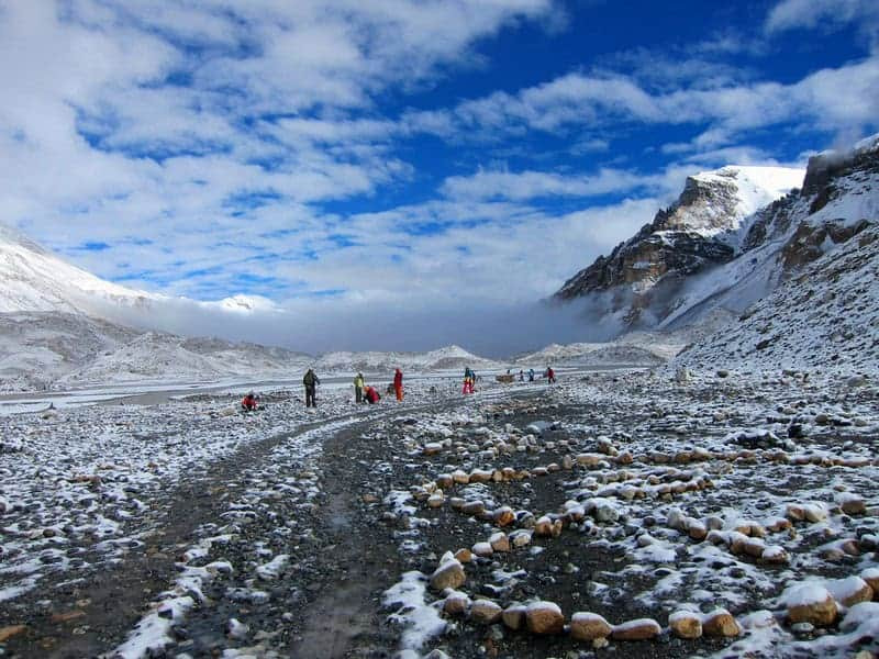Accessing the north side of Mount Everest starts with a flight to Lhasa, the capital of Tibet. From Lhasa, a 4-5 day drive across the Tibetan plateau is required to reach Everest North Base Camp, situated at 16,900 feet (5,150 meters (16,900 feet).