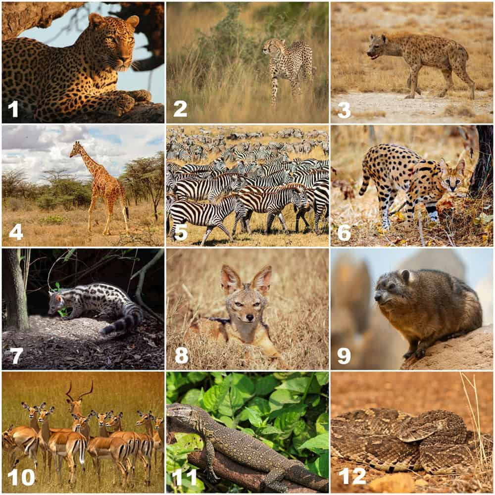 - Impala: Tan upper body mimics dry grass, while pale belly confuses depth.