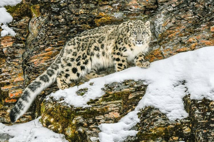 The Snow Leopard’s stunning coat is perfectly adapted to its mountainous, snowy habitat. With thick, smoky-gray fur and black rosettes and spots, these felines blend into rocky outcrops and snow-covered landscapes. Snow Leopards prey on animals such as ibex and marmots, maintaining their status as apex predators in their environment.