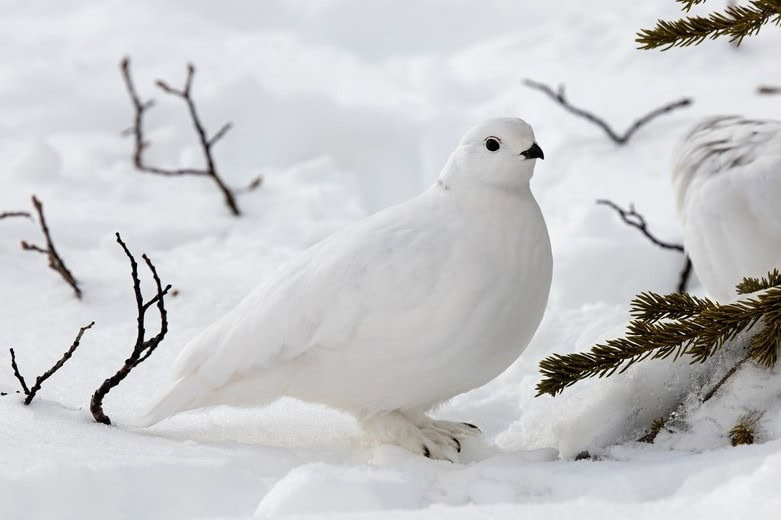 Ptarmigans are able to thrive in some of the most extreme cold climates on Earth. Native to Arctic and alpine regions, these birds have seasonal plumage changes that enable them to camouflage themselves into their surroundings throughout the year. In the summer, their feathers are earthy brown and gray, mirroring the rocky tundra and sparse vegetation. In the winter months, Ptarmigans don a pristine white coat of feathers that match their snow-covered homeland.
