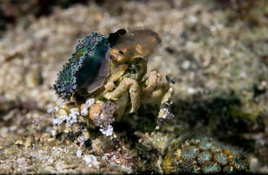 Decorator Crabs are good examples of nature’s ingenuity in camouflage. These crabs are predominantly found in the Indo-Pacific region, inhabiting coral reefs, rocky shores, and seagrass beds. What sets Decorator Crabs apart is their ability to attach various materials from their surroundings, such as algae, sponges, shells, and debris, to specialized structures on their exoskeletons. The process of decorating is highly selective and adaptive, with Decorator Crabs choosing materials that best match their immediate habitat.