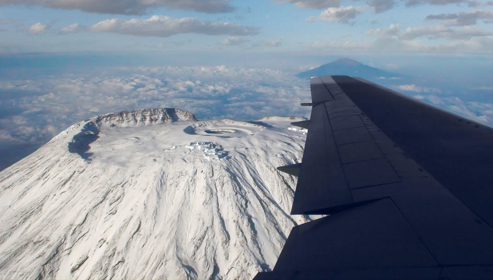 The sheer magnitude of what you have accomplished will be apparent when seen from an airplane. You should be able to spot the Uhuru Peak sign, the Southern and Northern glaciers, Reusch Crater and the Ash Pit.