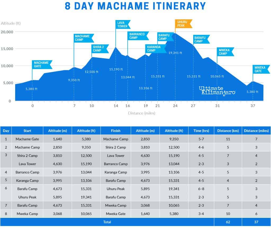 8 DAY MACHAME (DAYTIME SUMMIT) ITINERARY