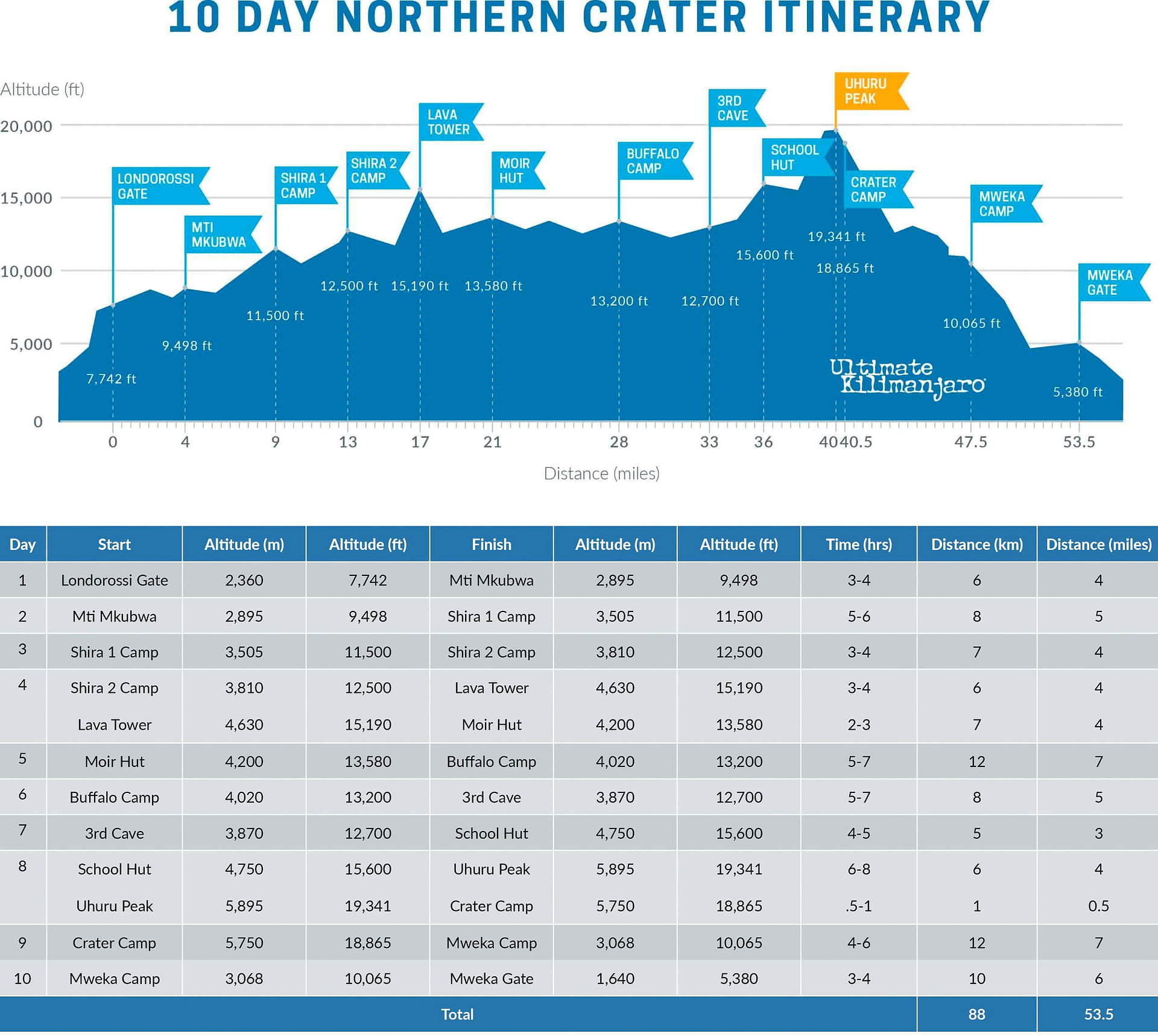 Note that summit day on this path is tougher than other routes due to its longer distance.