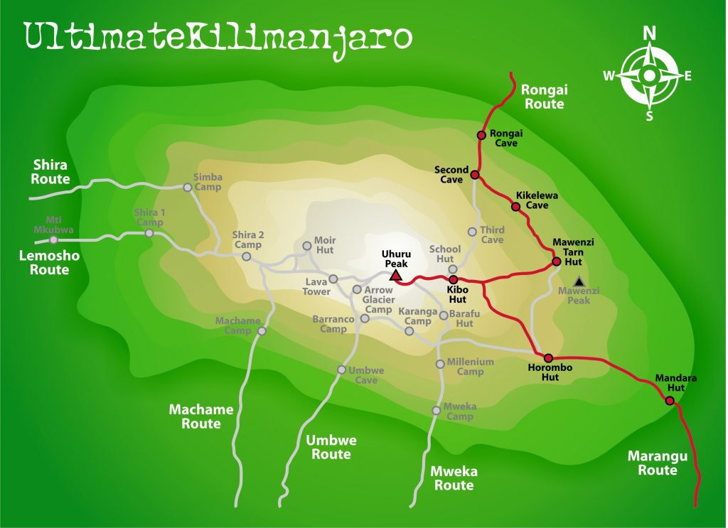 Below are individual maps of each Kilimanjaro route and short route descriptions.