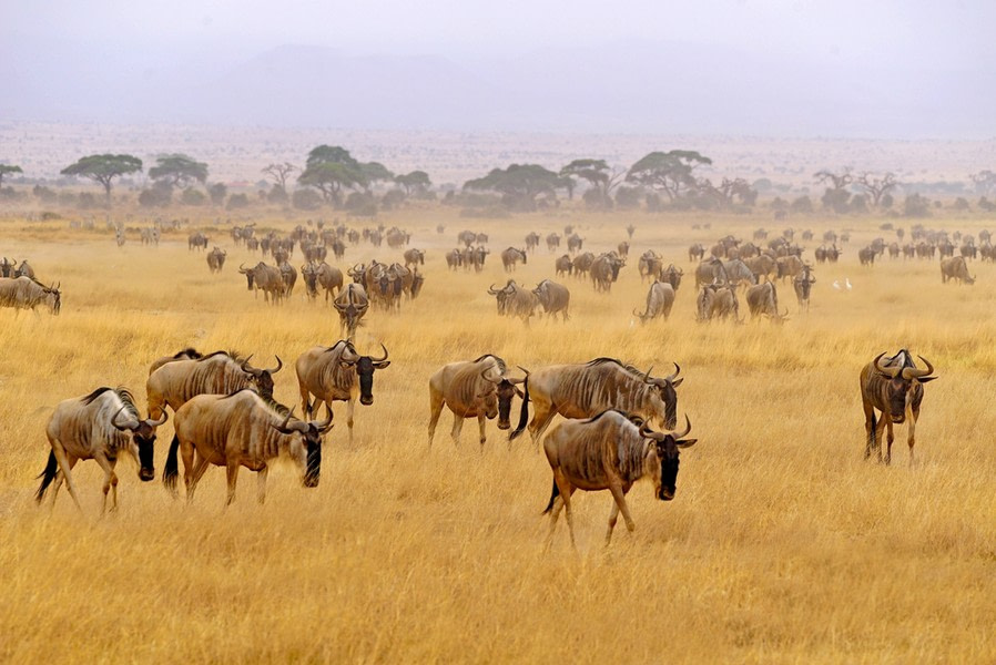 Wildebeest represent endurance on a continental scale. Every year, millions migrate up to 1,000 miles (1,600 km) through the Serengeti and Maasai Mara.