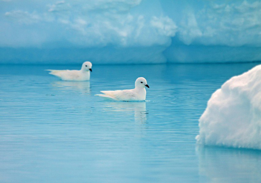 Snow Petrels are one of only three bird species that breed exclusively in Antarctica. Their pure white plumage makes them a ghostly presence against the Antarctic landscape, providing camouflage against predators. These birds are capable of enduring the freezing temperatures and fierce storms of the Antarctic. They nest in rock crevices and feed on fish, squid, and krill, which they catch from the surface of the ocean. Snow Petrels have a special gland above their nasal passage that helps excrete salt, as they ingest seawater while feeding.