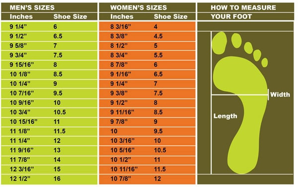 Note that this is a starting point. You will likely need a larger size than is indicated in the table for hiking boots and trail shoes.