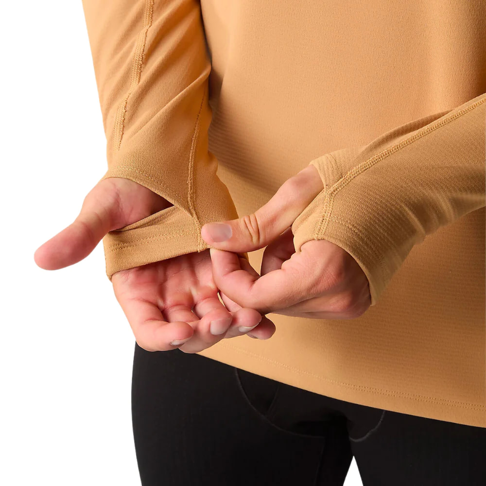 Some common types of base layer tops are crew necks, quarter zips and half zips. Though crew necks are the most common and will certainly work on the mountain, we do believe that quarter zips and half zips have real advantages. Quarter zip and half zip shirts allow you to get more or less airflow to regulate your temperature by zipping up or down depending on the conditions.