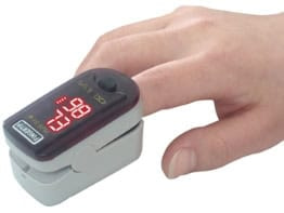 A pulse oximeter measures oxygen saturation – the oxygen level in your blood – and your pulse rate. The oximeter is placed on a climber’s fingertip. The oximeter uses two beams of light that shine into small blood vessels and capillaries in your finger. The sensor reflects the amount of oxygen in the blood.