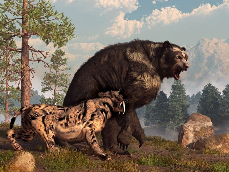 Arctodus simus stood about 6 feet (1.8 meters) tall at the shoulder when on all fours, but it could reach heights of over 12 feet (3.7 meters) when standing upright. The bear’s estimated weight ranged from 900 to 2,500 pounds (408 to 1,134 kilograms), making it significantly larger than any living bear species today.