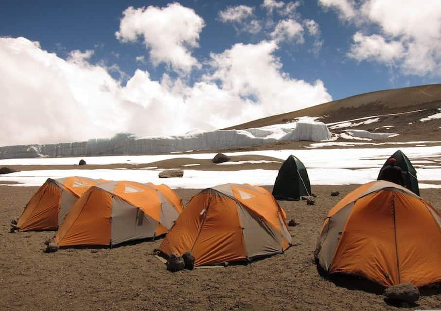For more adventurous folks, there is a way to sleep close to Furtwängler Glacier by staying at Crater Camp (18,865 feet / 5,750 meters). Crater Camp carries more risk of altitude sickness, so it is typically used by more experienced climbers who know they can acclimatize well. This camp gives climbers the chance to see the glacier up close, explore the area and the ash pit.