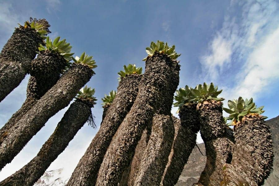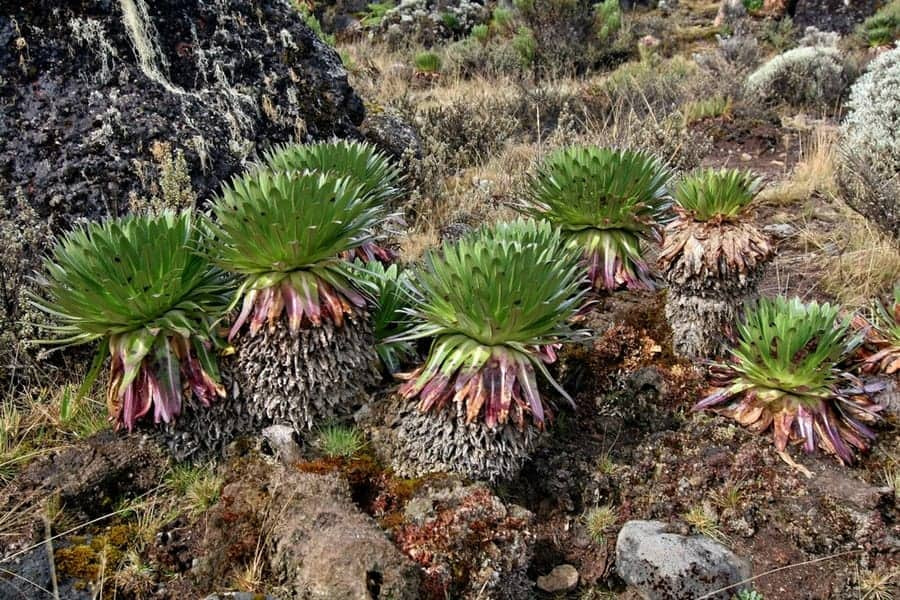 Dendrosenecio kilimanjari are endemic to Mount Kilimanjaro. Various species of Giant Groundsel grow on other mountains in East Africa.