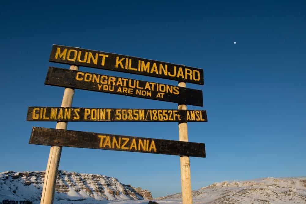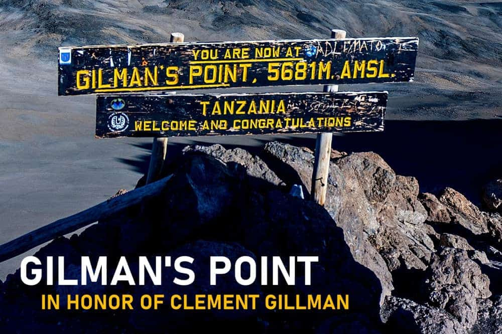 (Gilman’s Point, located on the crater rim of Mount Kilimanjaro, is the lowest of three summit points on the peak. Situated at an elevation of approximately 18,638 feet (5,681 meters), this spot was named after Clement Gillman, a pioneering East African engineer and geographer.