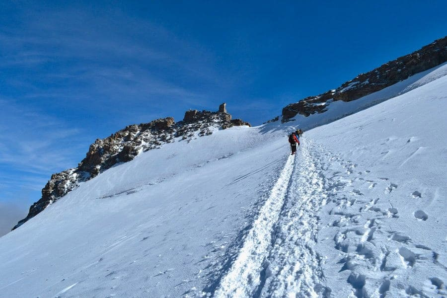 Tackling the mountain involves glacier travel as well as navigation of technical rock and ice sections. Climbers must be prepared for weather changes, potential crevasse dangers, and the physical demands of high-altitude climbing. To succeed, climbers should be able to use a mountaineering axe and walk in crampons, though basic training is usually provided when climbing with a guide.