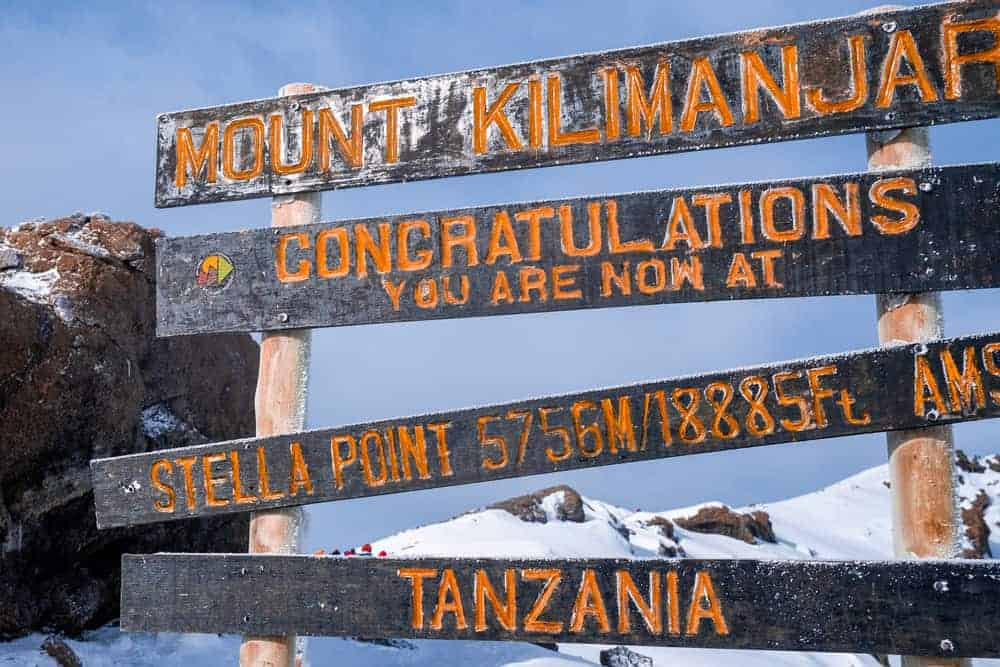 Today, a sign board stands on the spot marking Stella Point, rising 18,885 feet (5,756 meters) above sea level.
