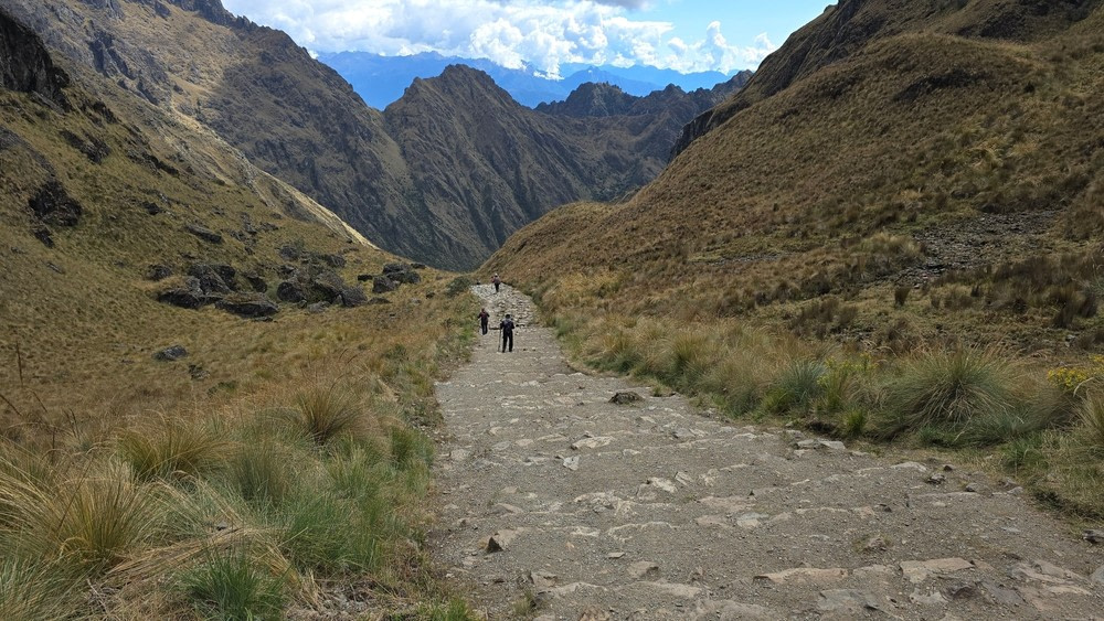 This is the hardest day of the trek. The morning begins with a steep ascent through dense cloud forest before reaching Llulluchapampa (12,630 feet/3,850 meters), an open plateau with stunning views. From here, the climb becomes tougher, leading to Dead Woman’s Pass (Warmiwañusqa), the highest point on the trail at 13,828 feet (4,215 meters). After a break, the trail descends into Pacaymayo Valley, where the second night’s campsite is located.