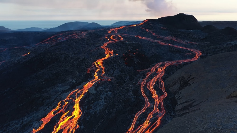 - Basalt: Dark, iron-rich lava that forms the mountain’s bulk. Basalt is heavy, hard, and common in oceanic and rift zone volcanoes.